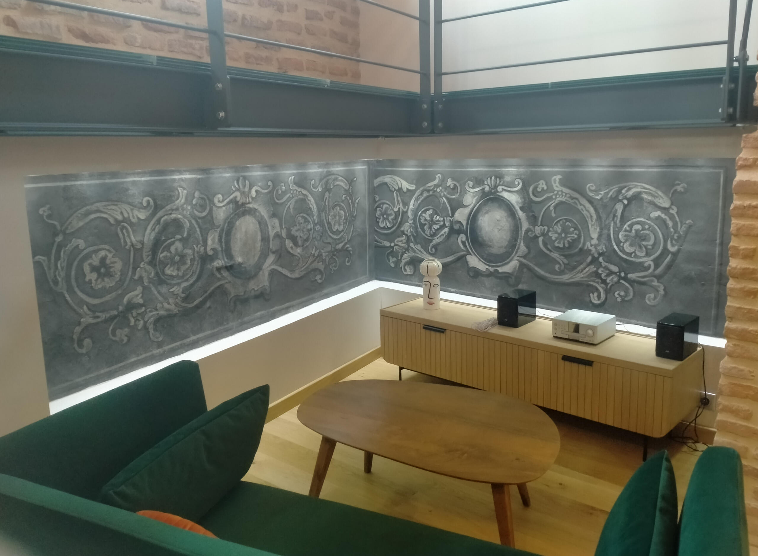 Nous retrouvons également le trompe l’œil qui permet d'ouvrir une fenêtre sur un mur aveugle ou de prolonger une perspective afin d'agrandir une pièce. Les possibilités sont quasi infinis. Je m'adapte à la demande du client, de ses envies et des possibilités qu'offre le lieu.