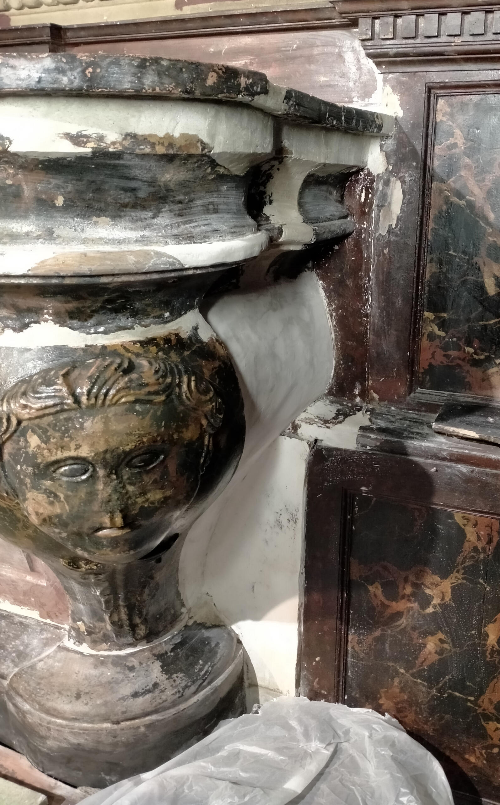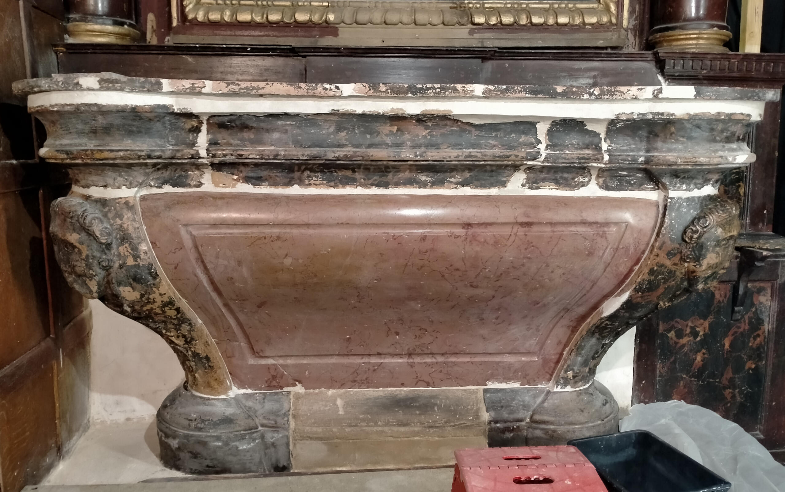 2022: Intervention restauration autel 19ème à l'église de Saint Pierre à Gaillac (81)Intégration des faux marbres
