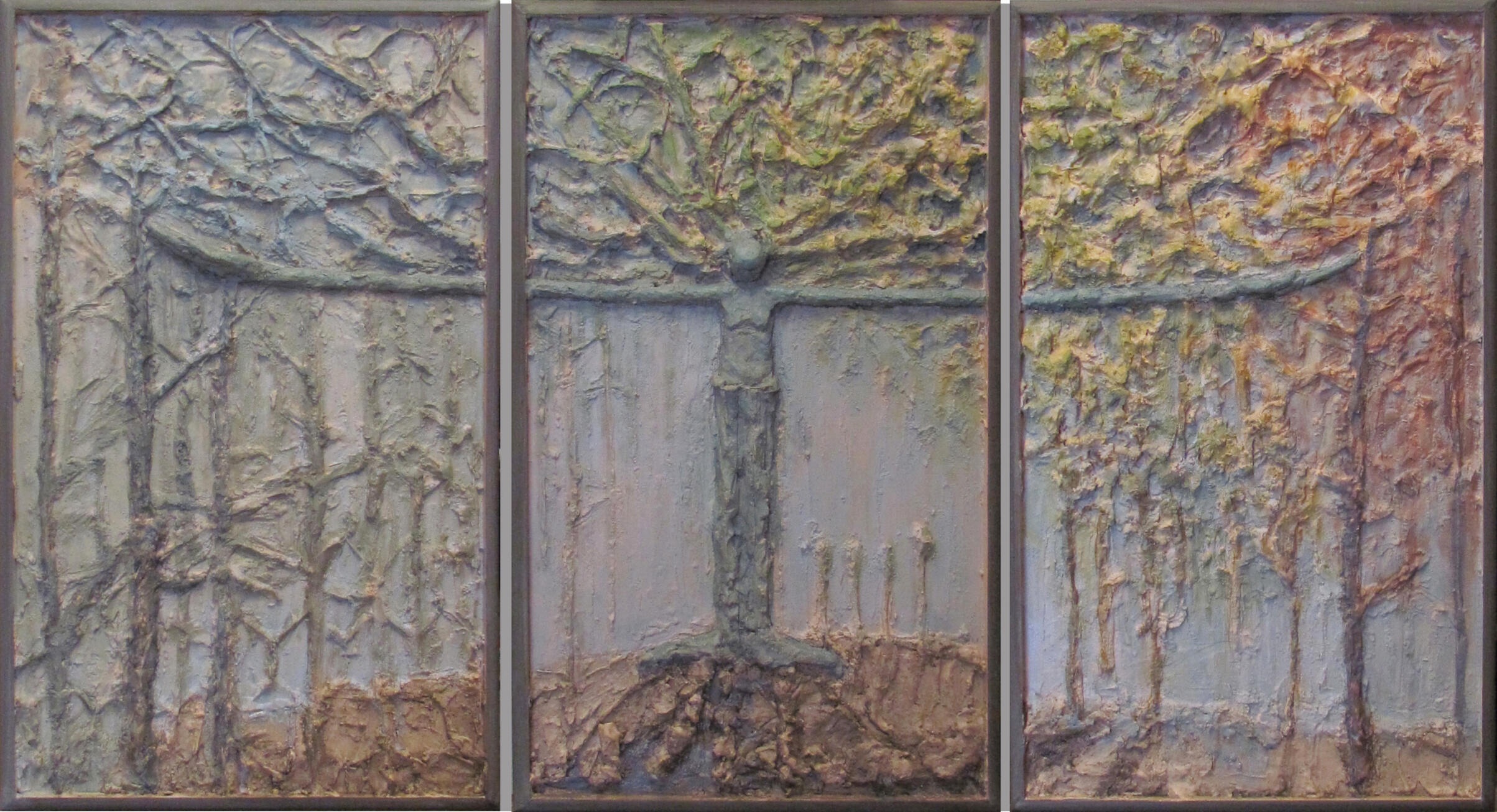 La peinture et la patine s’ajoute au volume que je créée. Elle l’habille pour lui donner une dimension nouvelle. Matière et texture picturale se complètent et ensemble prennent sens.